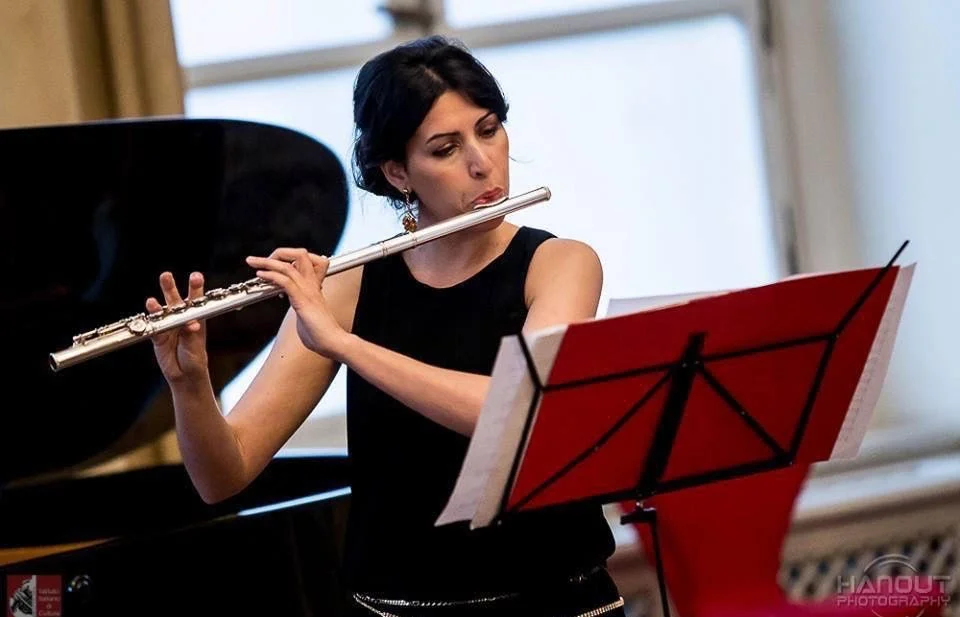 She has also served as principal flute/piccolo and second flute in several symphonic orchestras playing classical repertoire (such as Spoleto’s Teatro Lirico and the Royal Northern Sinfonia), as well as recording film soundtracks with the likes of Ennio Morricone, and accompanying famed artists and bands from a broad range of genres, from rock-prog to operatic pop such as Andrea Bocelli. Since moving to the Northeast, she has fostered interest in the flute through her concert and teaching activity, particularly at the Glasshouse International Music Centre in Gateshead. She plays in two duos (with pianist Kate Halsall, and with harpist Sarah Paterson), and founded the A Tre Voci trio with soprano Rachel Dyson and pianist Yoshie Kawamura.